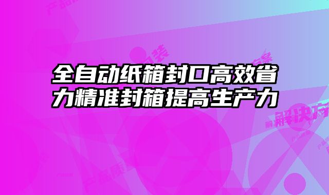 全自動紙箱封口機:槁效省力,精準封箱,提升生產力在現代化的生產制造領域...